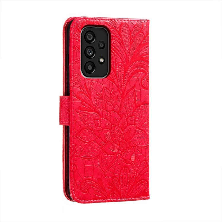 Para Samsung Galaxy A54 5G Lace Flower Relieve Flip Funda de cuero para teléfono (Rojo)