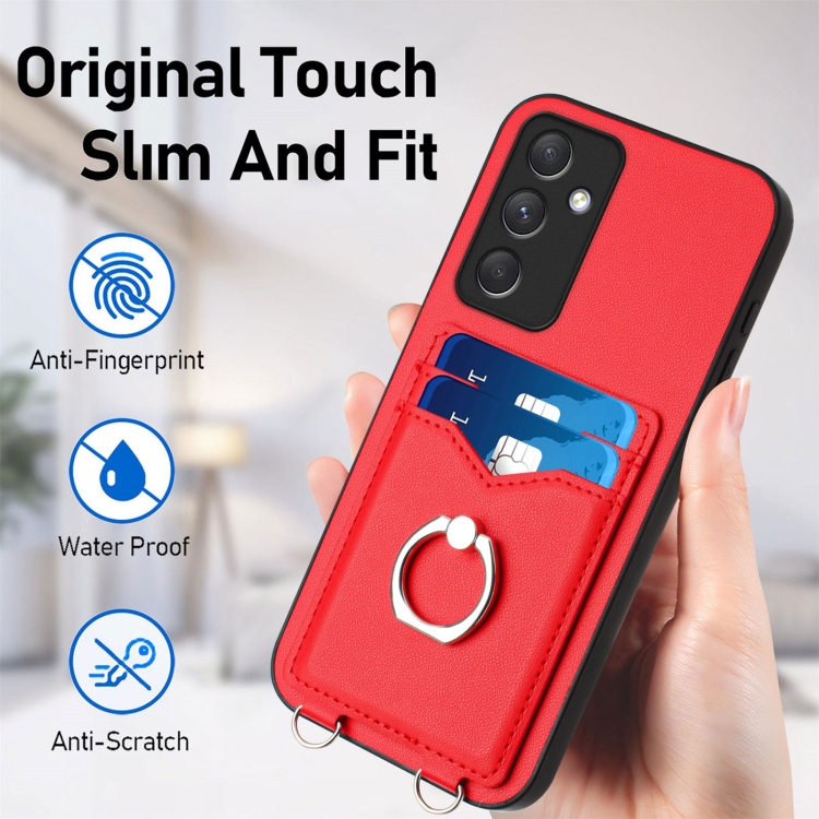 Estuche para Teléfono Samsung Galaxy A54 5G R20 con Soporte para Tarjeta y Anillo (Rojo)