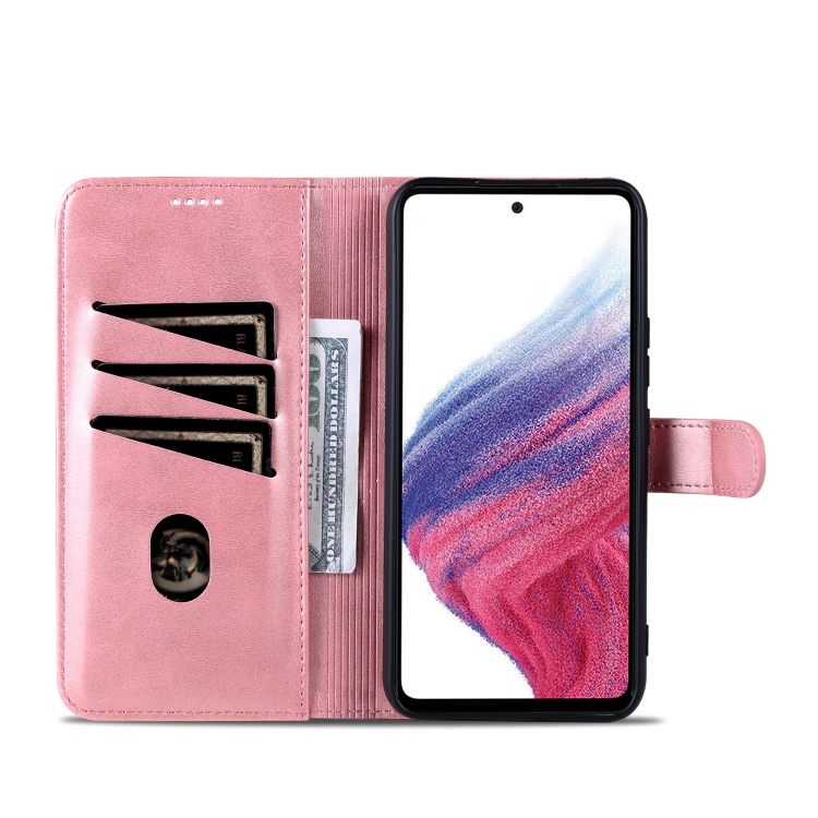 Funda de Cuero con Tapa Azns Skin Feel Calf Texture para Samsung Galaxy A55 5G (Oro Rosa)