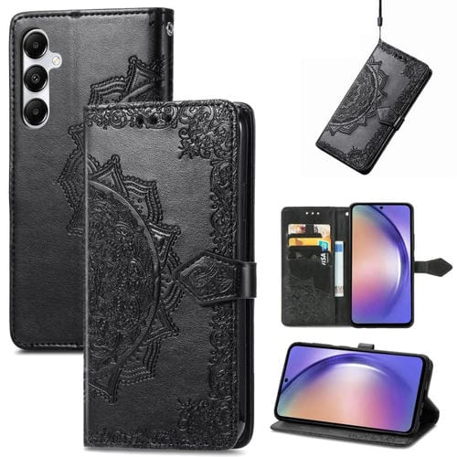 Funda para Teléfono Samsung Galaxy A55 5G Cuero Relieve Flor de Mandala (Negro)