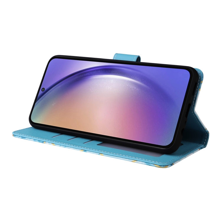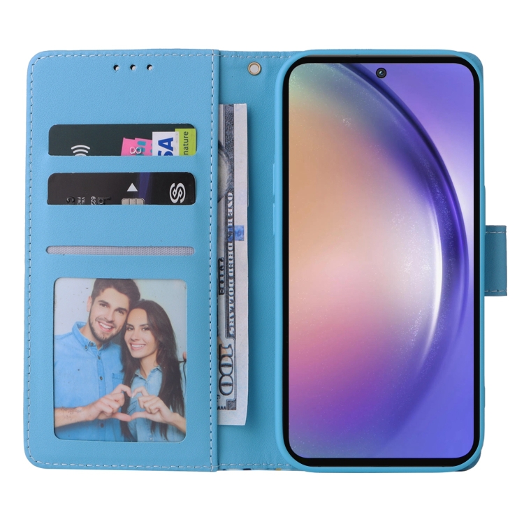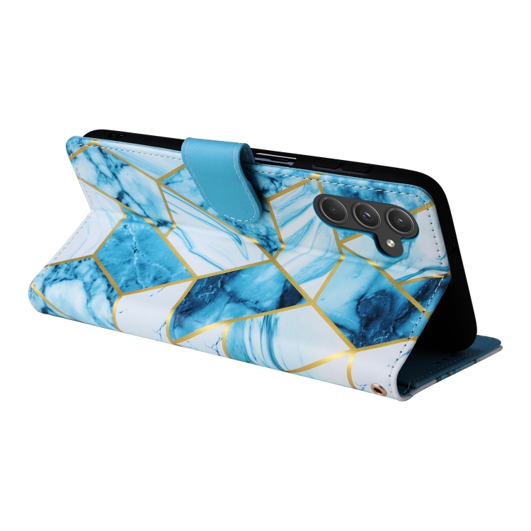 Funda de Cuero Samsung Galaxy A55 con Costuras Bronceadoras de Mármol (Azul)