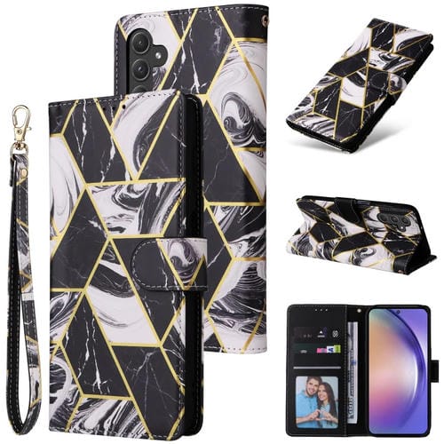 Funda para Samsung Galaxy A55 Cuero Costuras Bronceadoras Mármol (Negro)