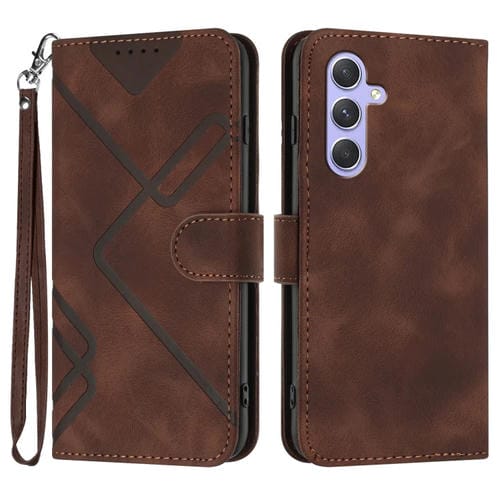Funda para Samsung Galaxy A55 Cuero Sensación de Piel Patrón de Líneas (Café)