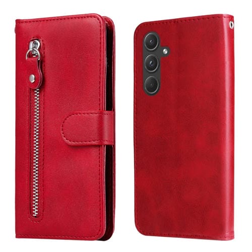 Funda para Teléfono Samsung Galaxy A55 Cuero con Cremallera y Textura de Becerro (Rojo)