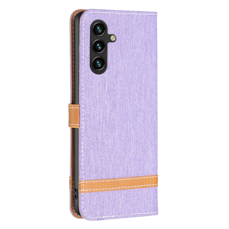 Funda para Teléfono Samsung Galaxy A55 Cuero Textura Vaquera Bloques de Color (Púrpura)