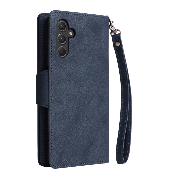Funda de Cuero Samsung Galaxy A55 Remache Hebilla 9 Tarjetas con Billetera de 3 Pliegues (Azul)