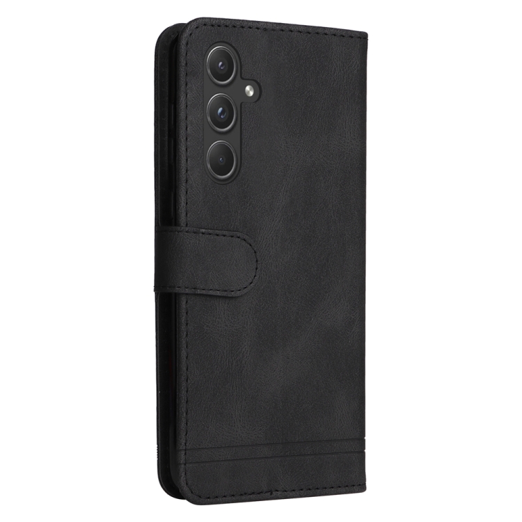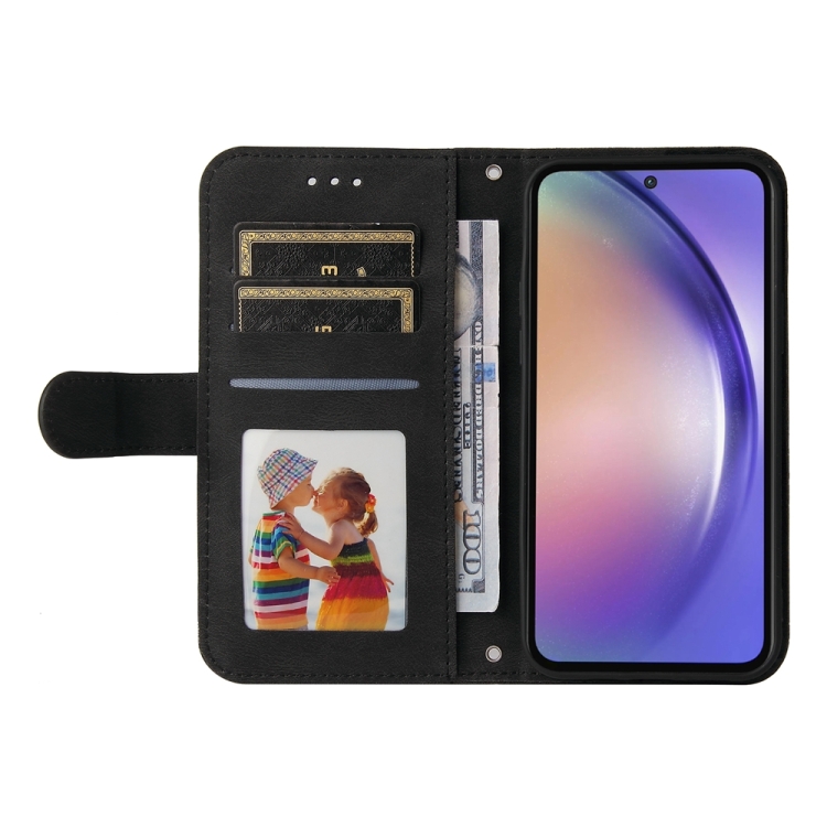 Funda de Cuero Skin Feel Life Tree para Samsung Galaxy A55 con Botón de Metal (Negro)