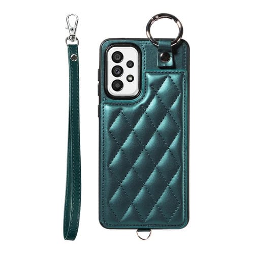 Estuche para Teléfono Samsung Galaxy A73 5G con Bolsa para Tarjetas Textura Rómbica y Cordón Corto (Verde)