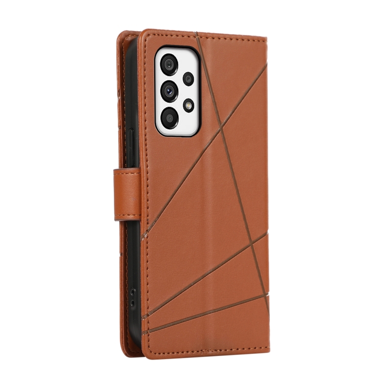Funda para Teléfono Samsung Galaxy A73 5G Pu con Línea En Relieve y Textura de Cuero Genuino (Marrón)