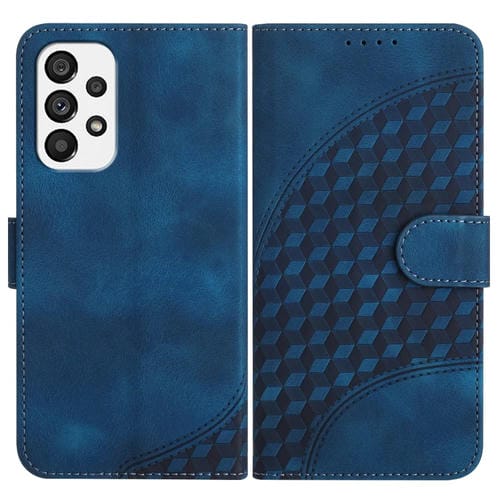 Funda de Cuero Samsung Galaxy A73 5G Yx0060 con Relieve Cabeza de Elefante y Cordón (Azul Real)