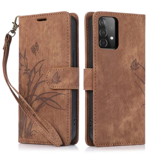 Funda para Teléfono Samsung Galaxy A73 Cuero Relieve Mariposa Orquídea (Marrón)