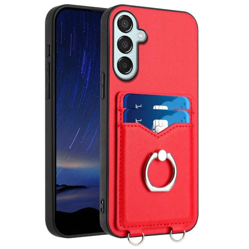 Estuche para Teléfono Samsung Galaxy F15 M15 R20 con Soporte para Tarjeta con Anillo (Rojo)