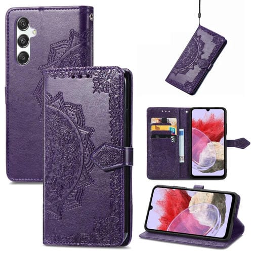 Funda para Teléfono Samsung Galaxy M34 5G Cuero con Relieve Flor de Mandala (Púrpura)