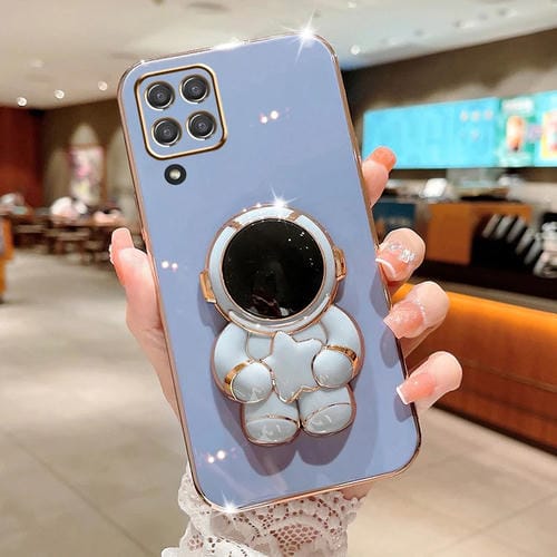 Estuche para Teléfono Samsung Galaxy M53 Embrace Stars con Soporte Astronauta Galvanizado (Azul)