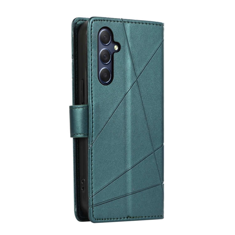 Funda para Teléfono Samsung Galaxy M54 Pu con Línea en Relieve y Textura de Cuero Genuino (Verde)