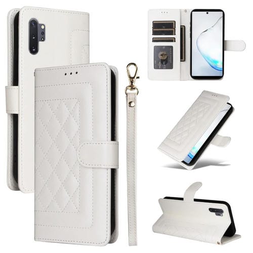 Estuche para Teléfono Samsung Galaxy Note10 + con Tapa de Cuero Diamond Lattice (Blanco)
