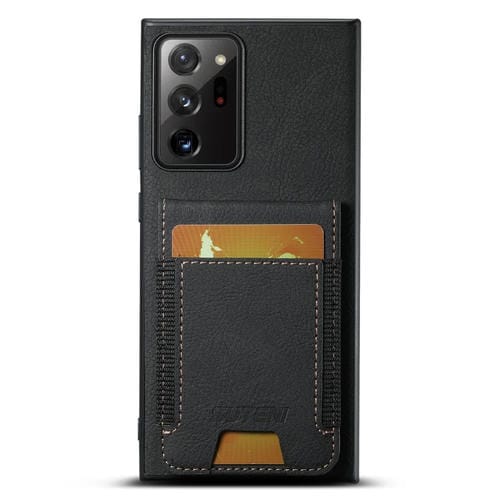 Funda para Teléfono Samsung Galaxy Note20 5G Suteni H03 con Soporte para Tarjeta Cuero Litchi (Negro)