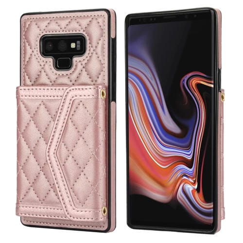 Estuche para Teléfono Samsung Galaxy Note9 con Bolsa para Tarjetas Textura Rómbica y Cordón Largo (Oro Rosa)