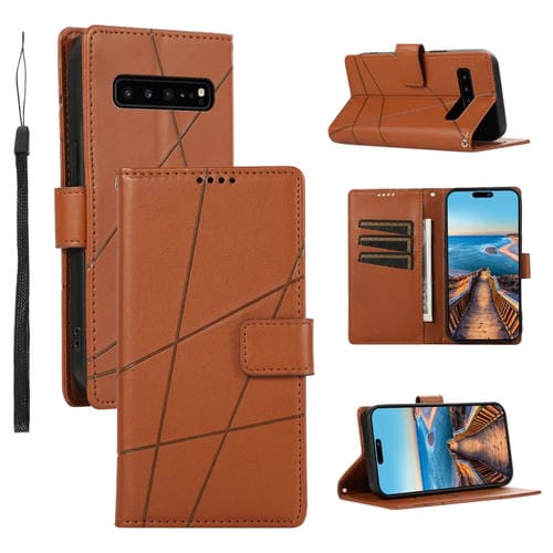 Funda para Teléfono Samsung Galaxy S10 5G PU con Línea en Relieve y Textura de Cuero Genuino (Marrón)