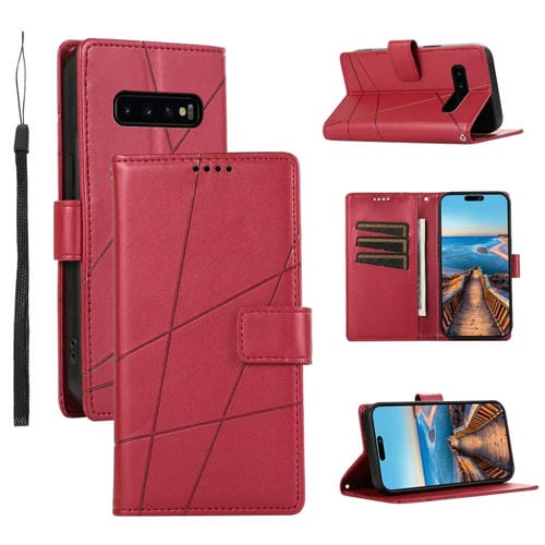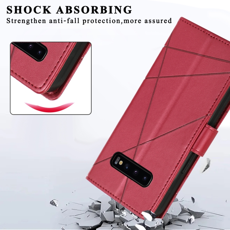 Funda para Teléfono Samsung Galaxy S10 + Línea en Relieve Textura Cuero Genuino Pu (Rojo)