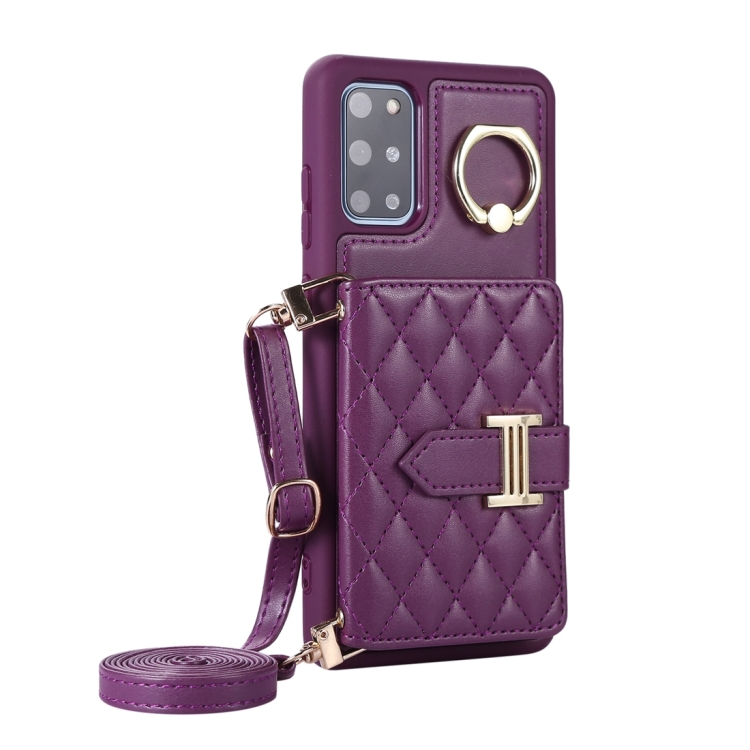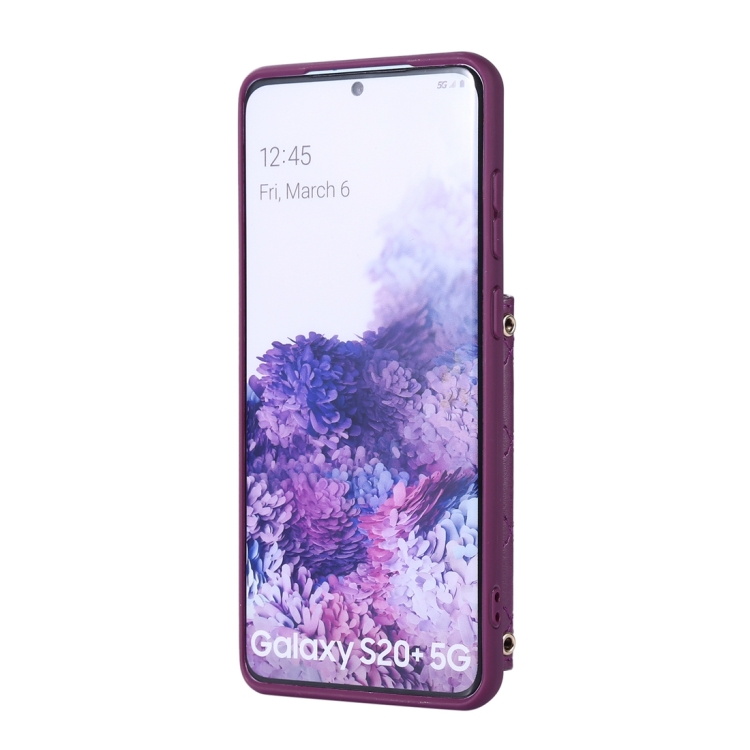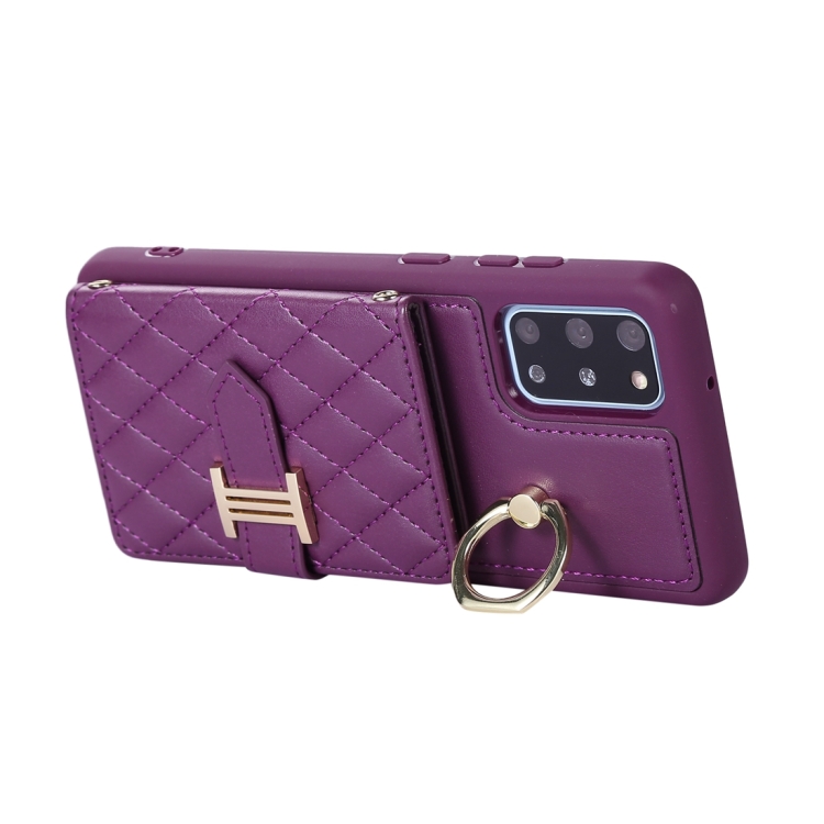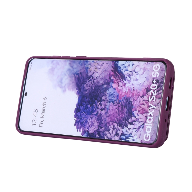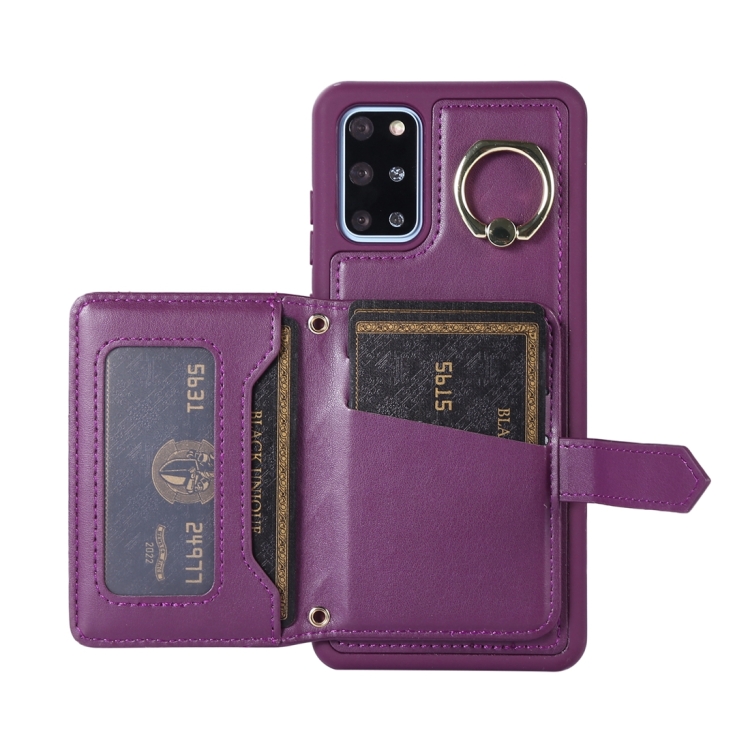 Estuche para Teléfono Samsung Galaxy S20+ con Soporte de Anillo y Bolsa de Tarjeta Horizontal con Cordón Doble (Púrpura Oscuro)