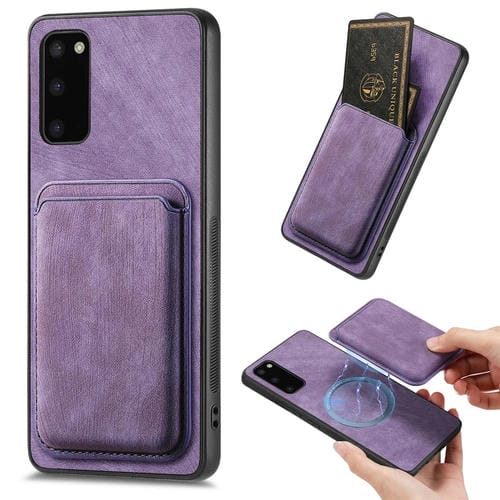 Funda de teléfono Samsung Galaxy S20 magnética con bolso de tarjeta de cuero retro (Púrpura)