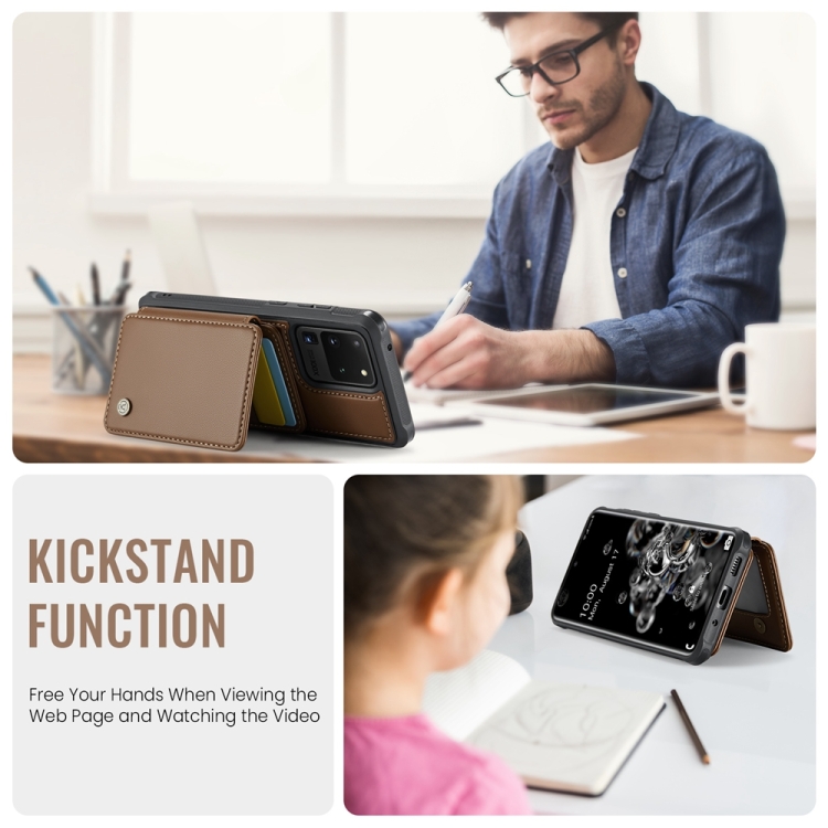 Estuche para Teléfono Samsung Galaxy S20 Ultra 5G Jeehood J05 Cuero Rfid Magnético Empresarial (Marrón)