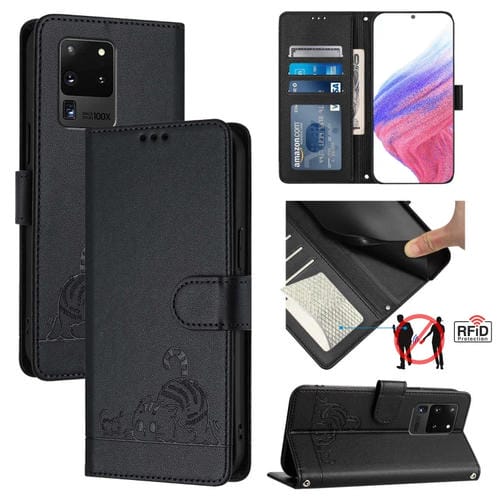 Estuche para Teléfono Samsung Galaxy S20 Ultra Cuero Rfid Patrón en Relieve y Cordón (Negro)