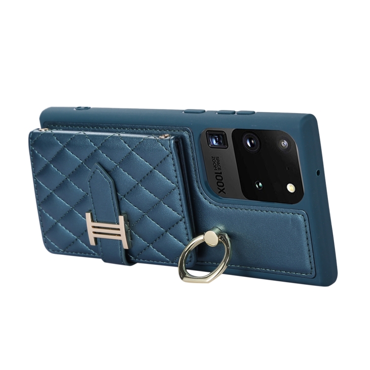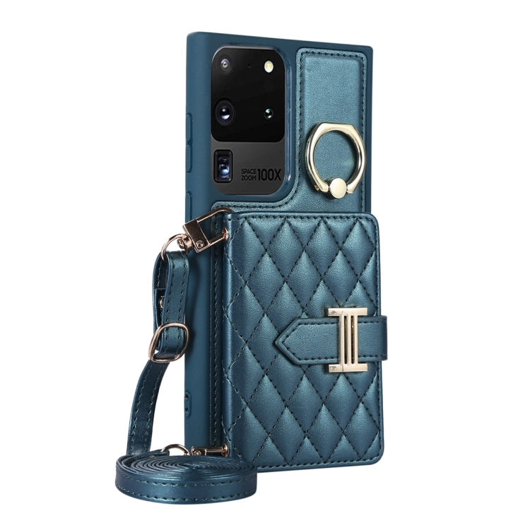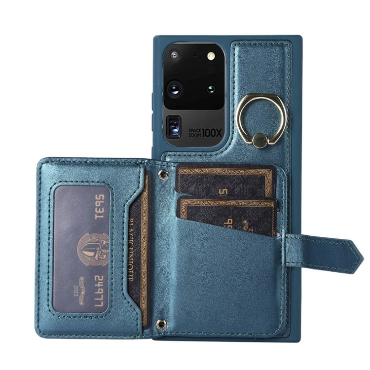 Funda para Samsung Galaxy S20 Ultra Horizontal Card Bag Ring Holder con Doble Cordón (Verde Oscuro)