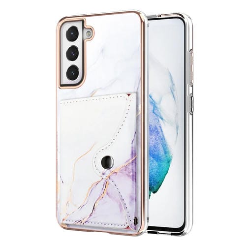 Estuche para Teléfono Samsung Galaxy S21+ 5G con Ranura para Tarjeta Imd Patrón Mármol (Blanco y Morado)