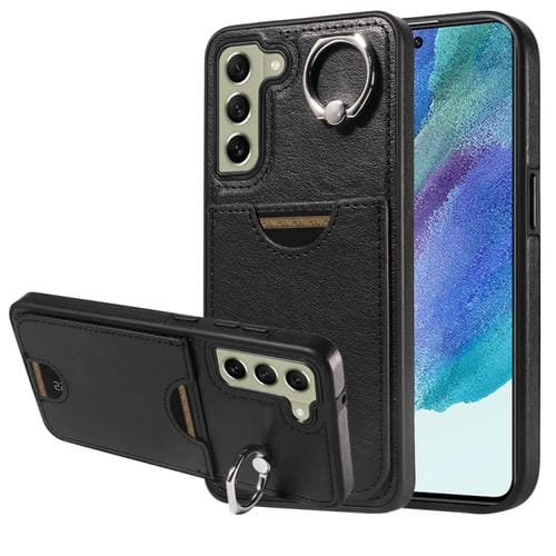 Funda para Teléfono Samsung Galaxy S21 FE 5G con Soporte Anillo y Ranura para Tarjeta (Negro)