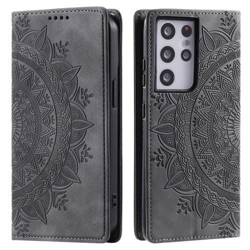 Funda de Cuero Magnética para Samsung Galaxy S21 Ultra 5G Totem en Relieve (Gris)