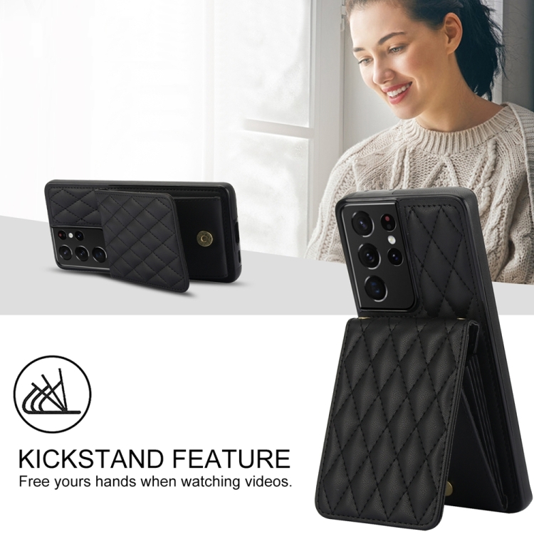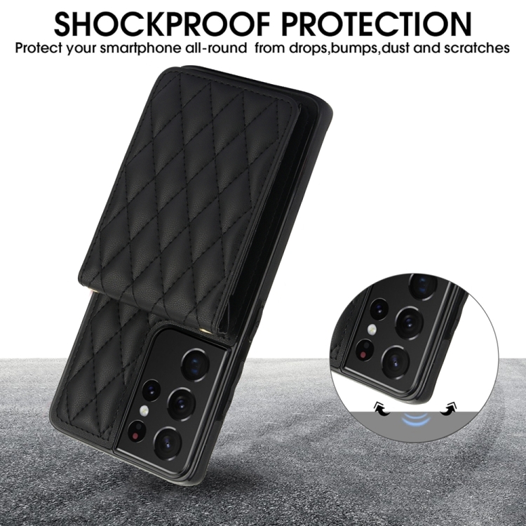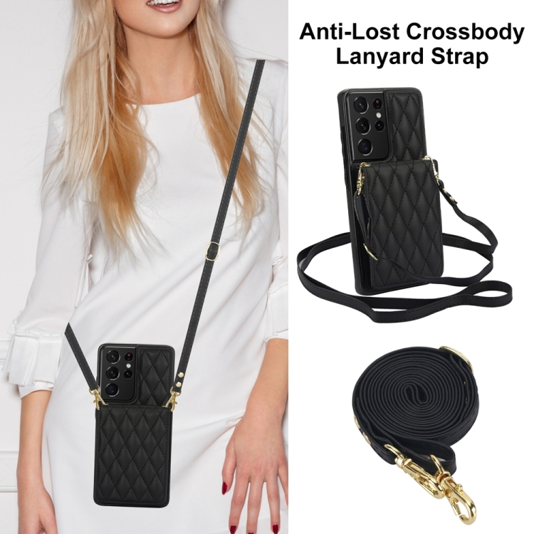Funda cruzada Samsung Galaxy S21 Ultra 5G Ym015 con bolsa para tarjeta Rómbica RFID (Negro)