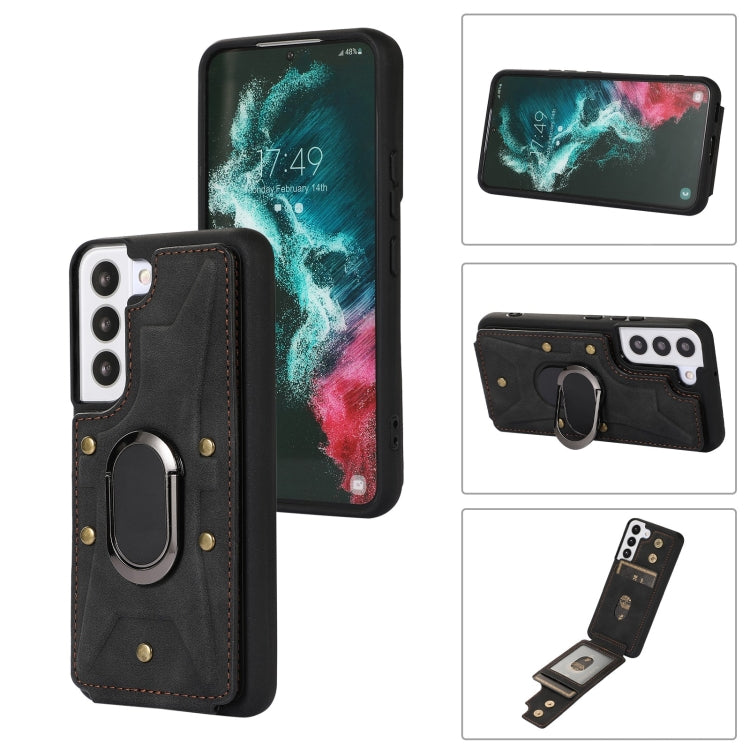 Para Samsung Galaxy S22 5G Armor Ring Wallet Back Cover Phone Case (Negro)