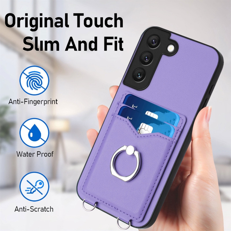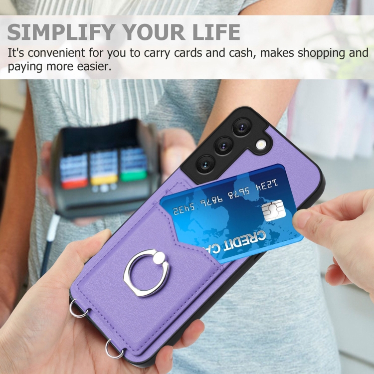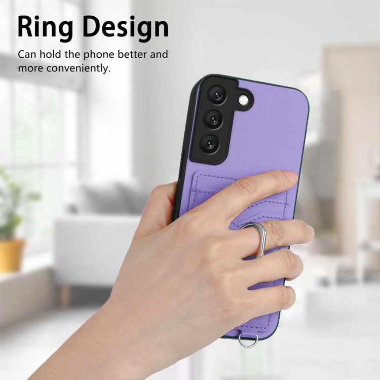 Estuche para Teléfono Samsung Galaxy S22 + 5G R20 con Soporte para Tarjeta y Anillo (Púrpura)