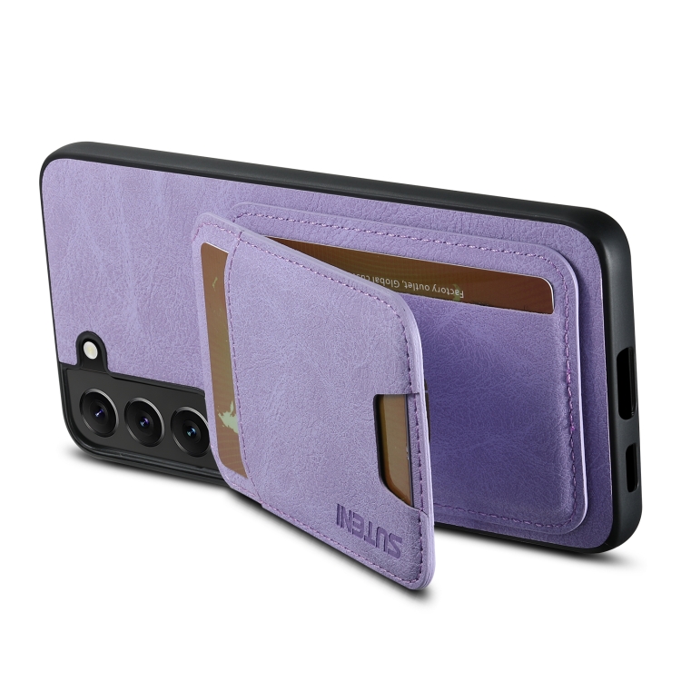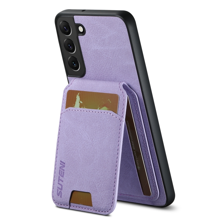 Funda para Teléfono Suteni H02 para Samsung Galaxy S22 + 5G con Soporte y Billetera de Cuero Litchi (Púrpura)