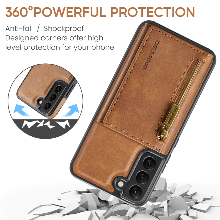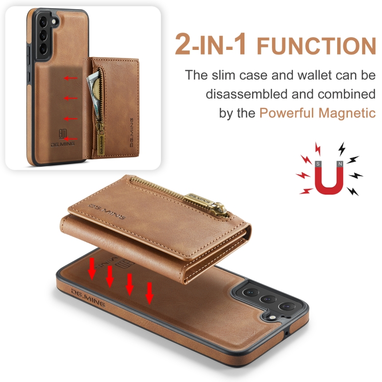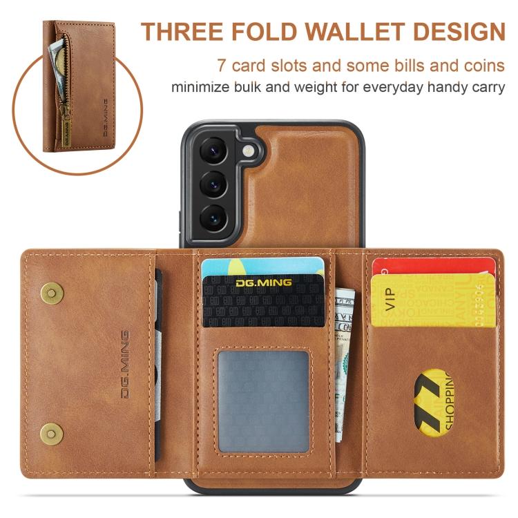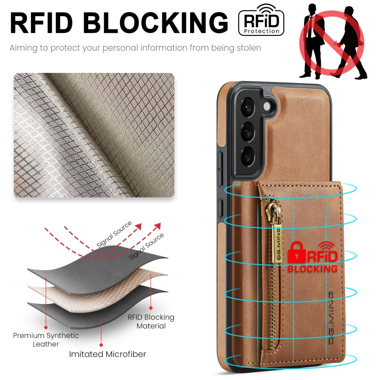 Funda para Samsung Galaxy S22 Dg.Ming M5 Series Zip RFID Cuero Desmontable con Tarjetas (Marrón)