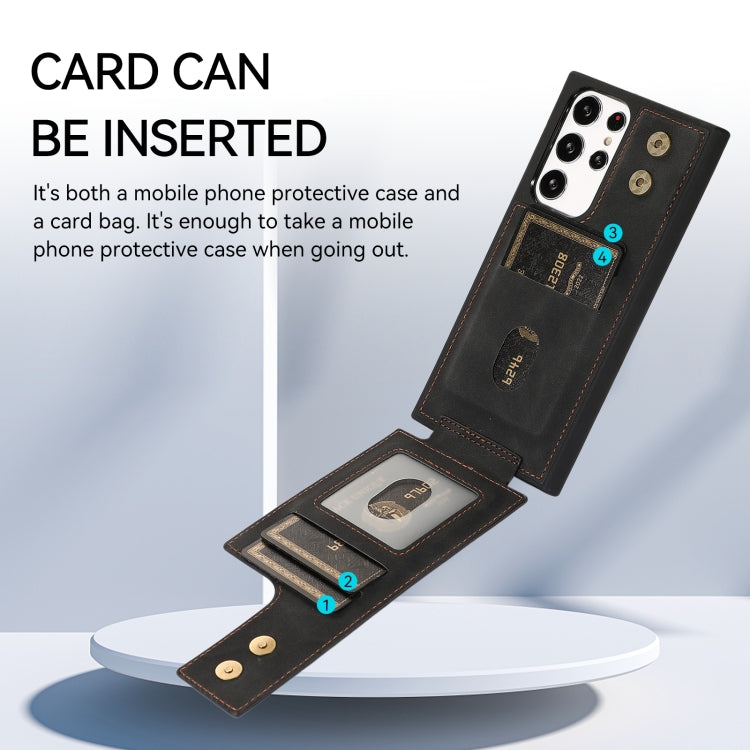 Para Samsung Galaxy S23 Ultra 5G Armor Ring Wallet Back Cover Phone Case (Negro)