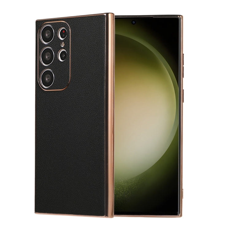 Para Samsung Galaxy S23 Ultra 5G Cuero Genuino Serie Luolai Nano Plating Phone Case (Negro)