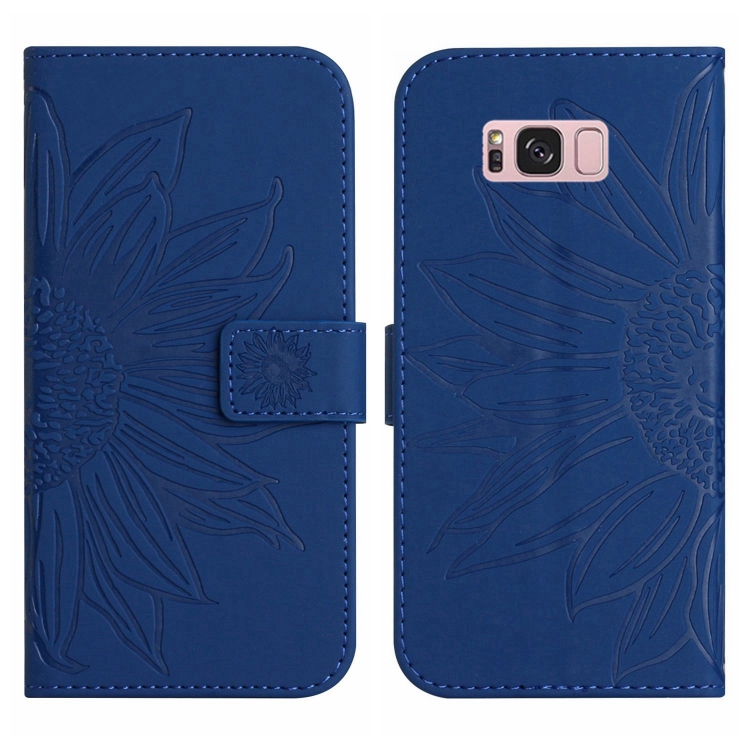 Funda Flip de Cuero Samsung Galaxy S8+ Skin Feel Sun Flower Pattern con Cordón (Azul Oscuro)