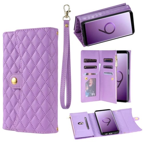 Estuche para Teléfono Samsung Galaxy S9 Cuero Rómbico con Billetera MultiTarjeta con Cremallera (Púrpura)