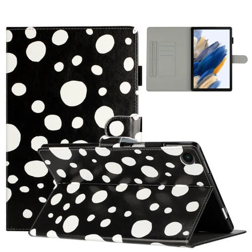 Funda de Cuero Samsung Galaxy Tab A8 10.5 (2021) X200 con Patrón de Puntos (Negro y Blanco)