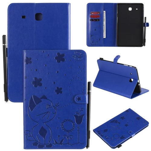 Funda protectora para Samsung Galaxy Tab E9.6 T560 Cat Bee patrón en relieve mesa a prueba de golpes con tapa, soporte, ranuras para tarjetas y bolígrafo (Azul)