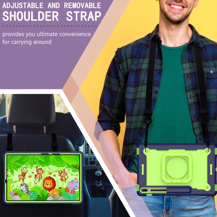 Funda tablet para Samsung Galaxy Tab S7+ / S8+ / S7 FE Silicone + PC Bracelet Holder (Azul Marino + Amarillo Verde)