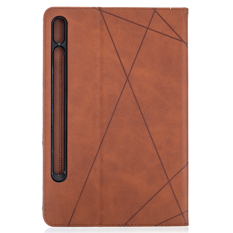 Funda para Tablet Samsung Galaxy Tab S8 y Galaxy Tab S7 T870 Rhombus Texture Horizontal Flip con Soporte y Ranuras de Tarjetas (Marrón)