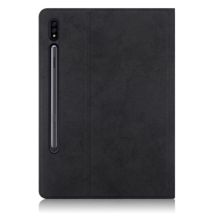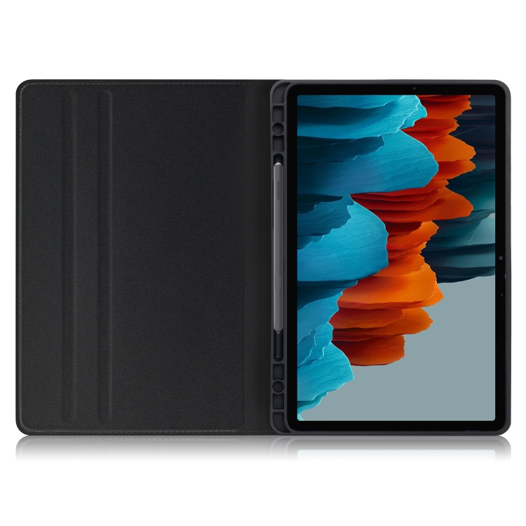 Funda TPU de Cuero para Samsung Galaxy Tab S8 y Tab S7 T870 T875 con Soporte Horizontal y Ranura de Lápiz (Negro)