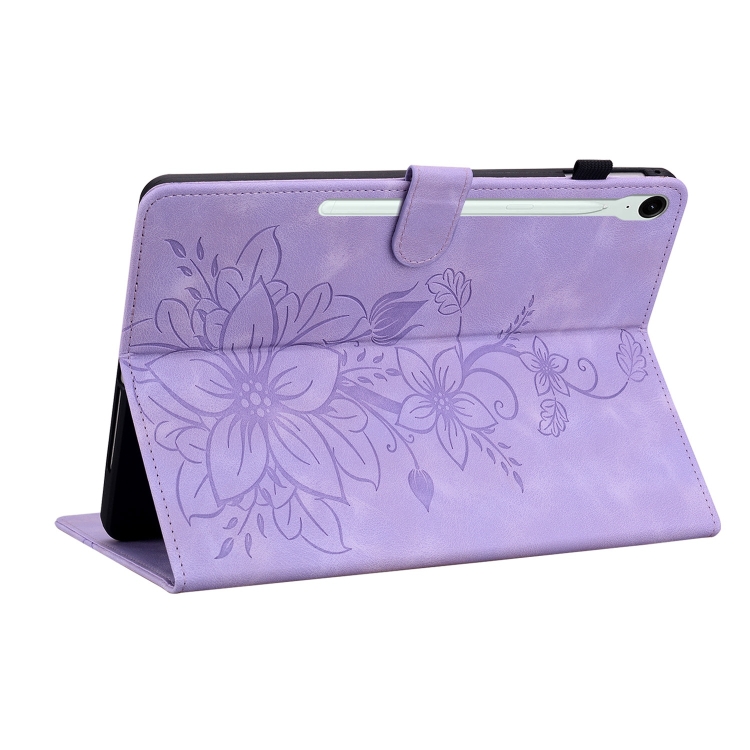 Funda para Tablet Samsung Galaxy Tab S9 / S9 FE Cuero con Relieve Lily (Púrpura)