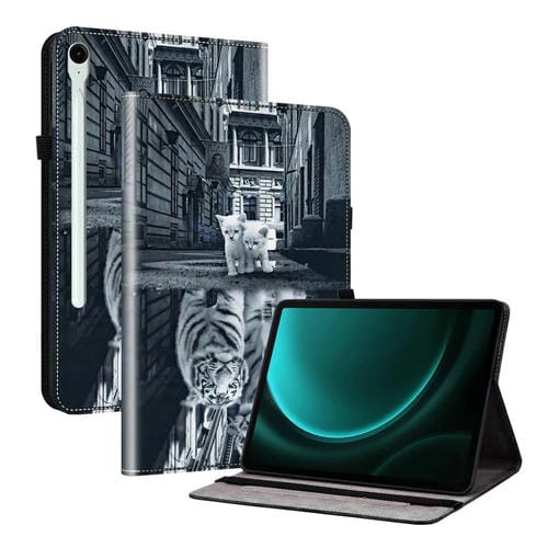 Funda para Tablet Samsung Galaxy Tab S9 / S9 FE Cuero Pintado Textura de Cristal (Tigre Reflejo de Gato)
