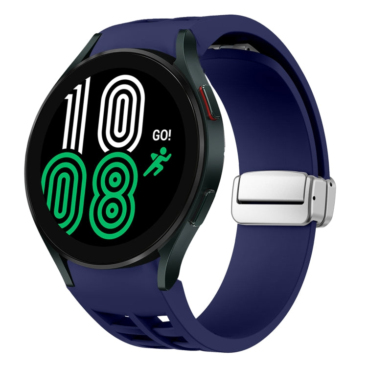 Correa de Reloj silicona para Samsung Galaxy Watch 4 40/44mm Richard con hebilla plateada plegable magnética (Azul Medianoche)