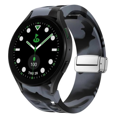 Correa de Silicona para Samsung Galaxy Watch 5 Golf Edition Richard Correa con Hebilla Plateada Plegable Magnética (Camuflaje Gris Negro)